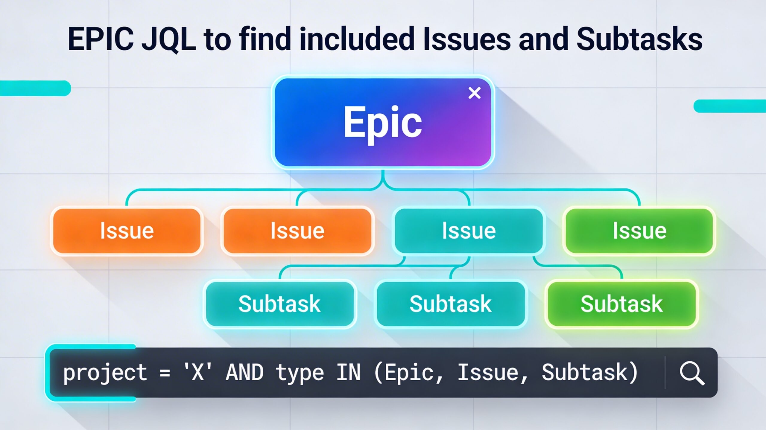 - Save your working Epic-plus-subtasks query as a reusable filter for dashboards and boards.