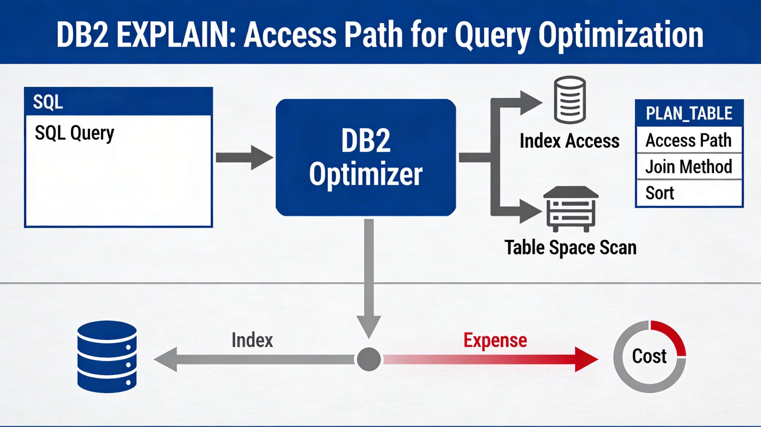 DB2 EXPLAIN is a foundational tool for query performance tuning, giving visibility into the optimizer’s access path choices through PLAN_TABLE and related EXPLAIN tables. By systematically capturing, interpreting, and acting on EXPLAIN output—often aided by Visual Explain diagrams—DBAs and developers can ensure that critical queries use efficient access paths and that schema and statistics evolve in alignment with workload demands.
